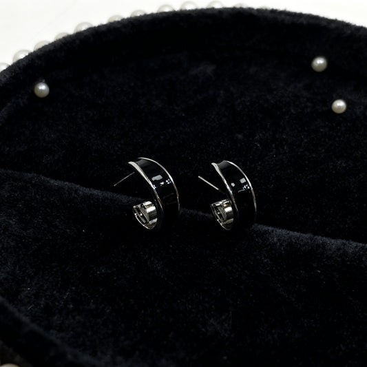 Black Enamel & Silver C-Hoop Earrings